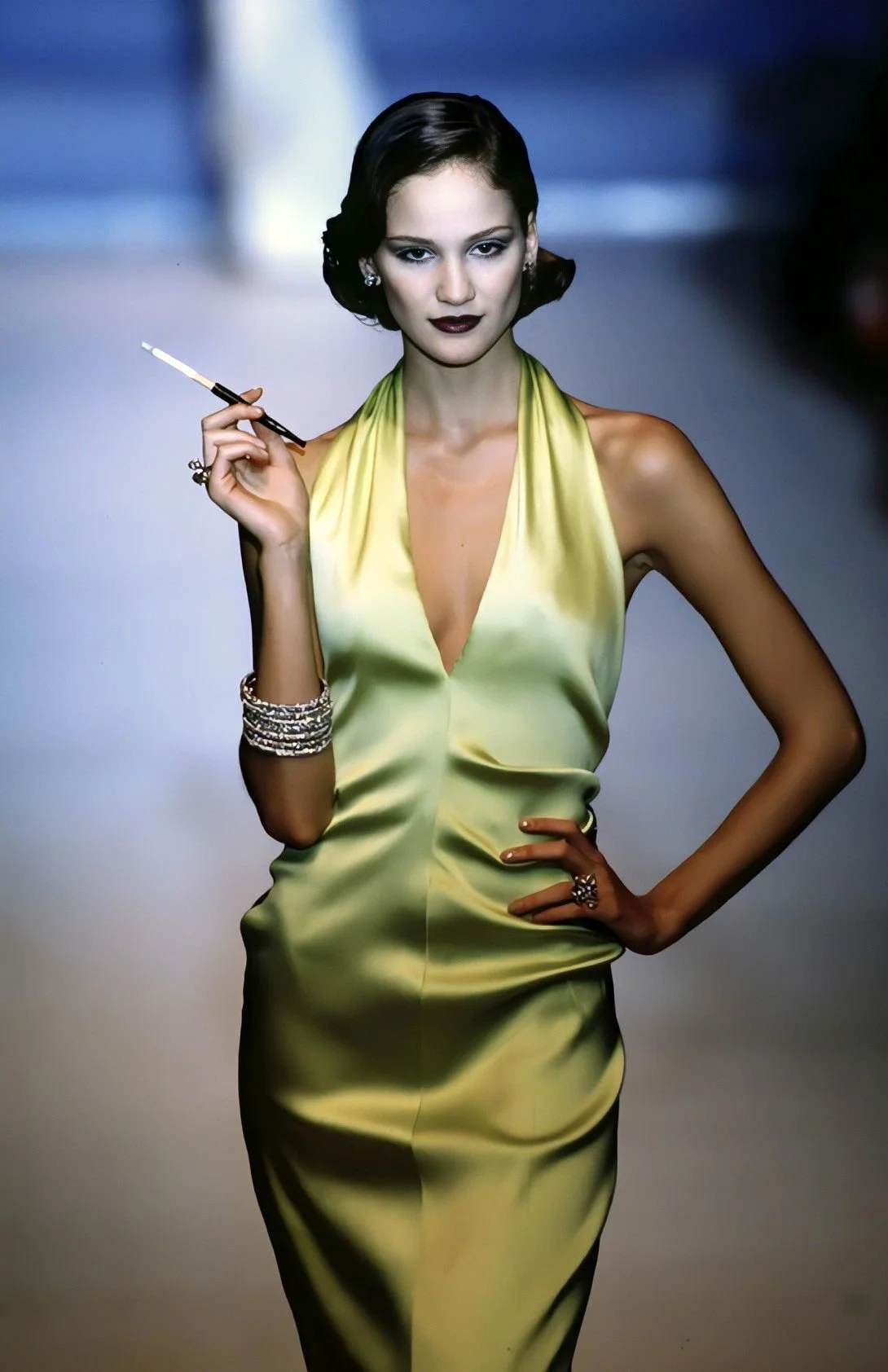 Smoking keeps showing up on runways. A cigarette hanging from a model’s lip, a puff just before a walk begins. Backstage photos feel like throwbacks: film grain, smudged eyeliner, a thin Vogue Cig in hand. It is the same mood Carrie Bradshaw carried through Sex and the City: always smoking, always moving, always being watched. Young, beautiful, and undone in the most cinematic way. A cigarette makes things more interesting. It is part accessory, part armor. That kind of imagery is hard to forget. And it is no surprise that in 2025, designers and stylists are still trying to revive it. At shows like Saint Laurent, the smoke feels almost natural. It is seductive. You might think we’re in 2002, but we’re in 2025, a world of clean girl aesthetics and countless health tips. So why bring back this little lung killer?